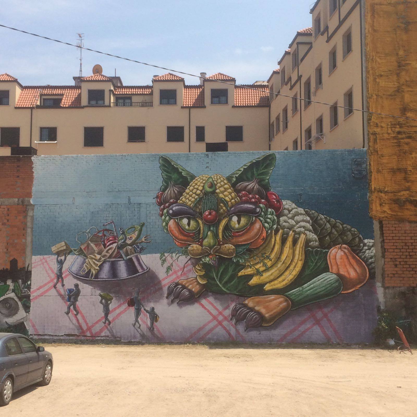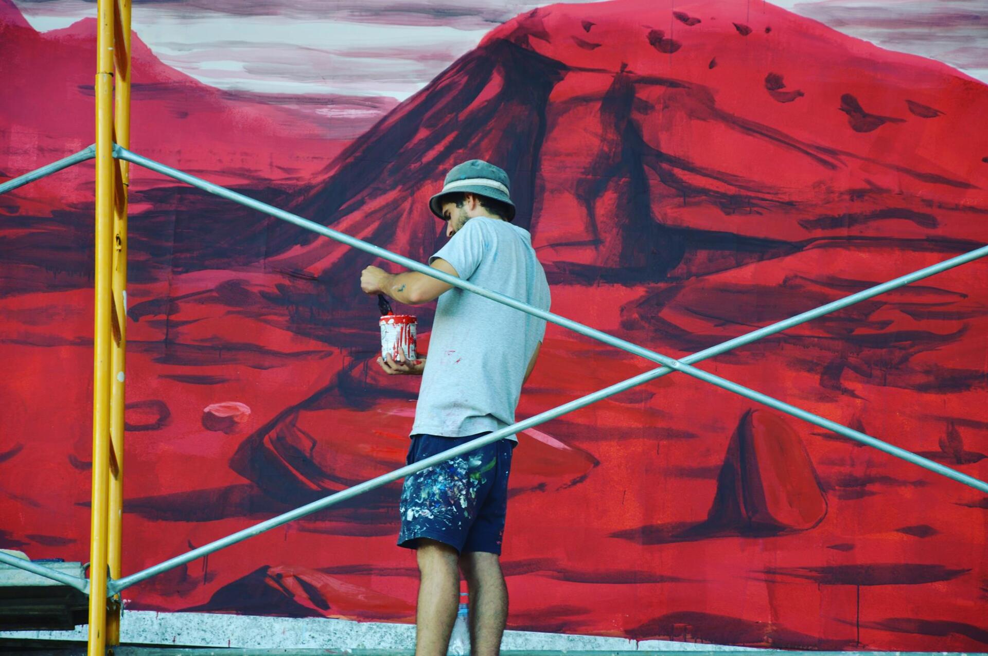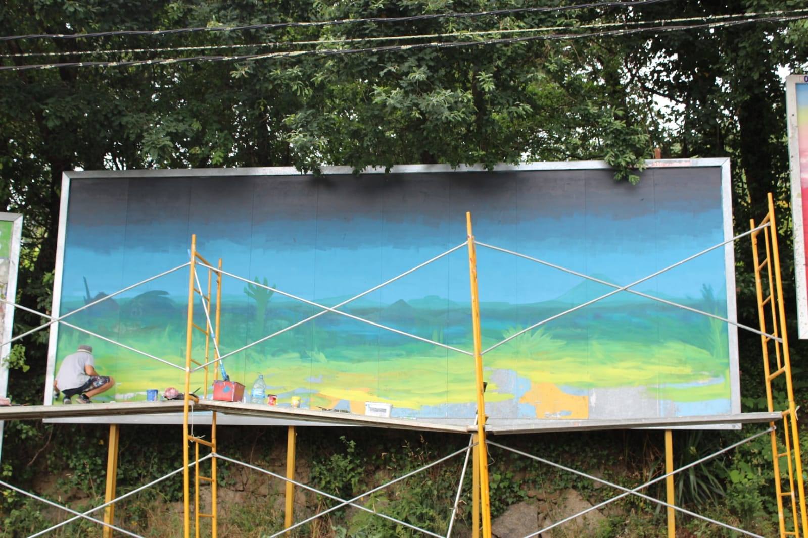 Pintura Mural sobre valla publicitaria.