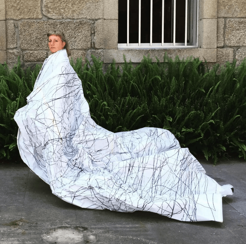 Una provocación, casi un acto de liberación que se exprime a través del texto escrito, como un megáfono mudo que incita a una confrontación sobre inquietudes y obsesiones de nuestros tiempos. Argumentos íntimos y complejos comprimidos en una única palabra, imprimida con letras enormes sobre grandes carteles que serán colocados directamente por mano de la artista en varios lugares del municipio, vivirán en el paisaje durante toda la manifestación. Una acción catártica, exorcizante, que se instala con prepotencia en el tejido del centro urbano de Caldas de Reis, invirtiendo la usual percepción visiva para dar voz a las más íntimas inquietudes.