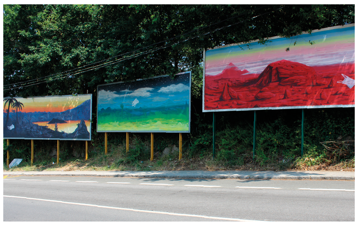 Con la idea de recuperar el soporte de las vallas publicitarias que se encuentran en la salida norte de la carretera nacional que cruza Caldas de Reis, el artista realiza un tríptico. El contexto es determinante en su trabajo.