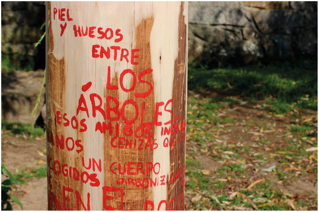 El proyecto es una llamada de atención al problema de los incendios forestales en Galicia. Se pretende encontrar un lugar propicio para la reflexión y la toma de conciencia de la situación, desde la que mostrar la destrucción del medio natural de Galicia y el dolor que arrastramos por su pérdida. Fomenta la participación de todos el que llega allí, provocando una relación causa/efecto, con observación simultánea de la imagen de un montículo quemado y semillas de roble recién germinado a los pies de la intervención, invitando a plantar, donde tu caminar y tu corazón la llevará.