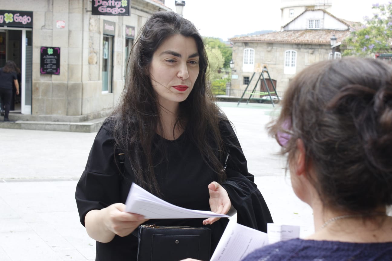 Proyecto artístico que genera un diálogo con la ciudadanía de Caldas de Reis focalizando la atención sobre las cuestiones de género y fomento de la igualdad. Como estrategia creativa, propone una experiencia urbana participativa, que sirve como herramienta de cambio social. Quiere romper el control social de género, sacando las mujeres de Caldas de Reis del anonimato de los espacios interiores y privados recuperando la historia de la ciudad a través de sus miradas.