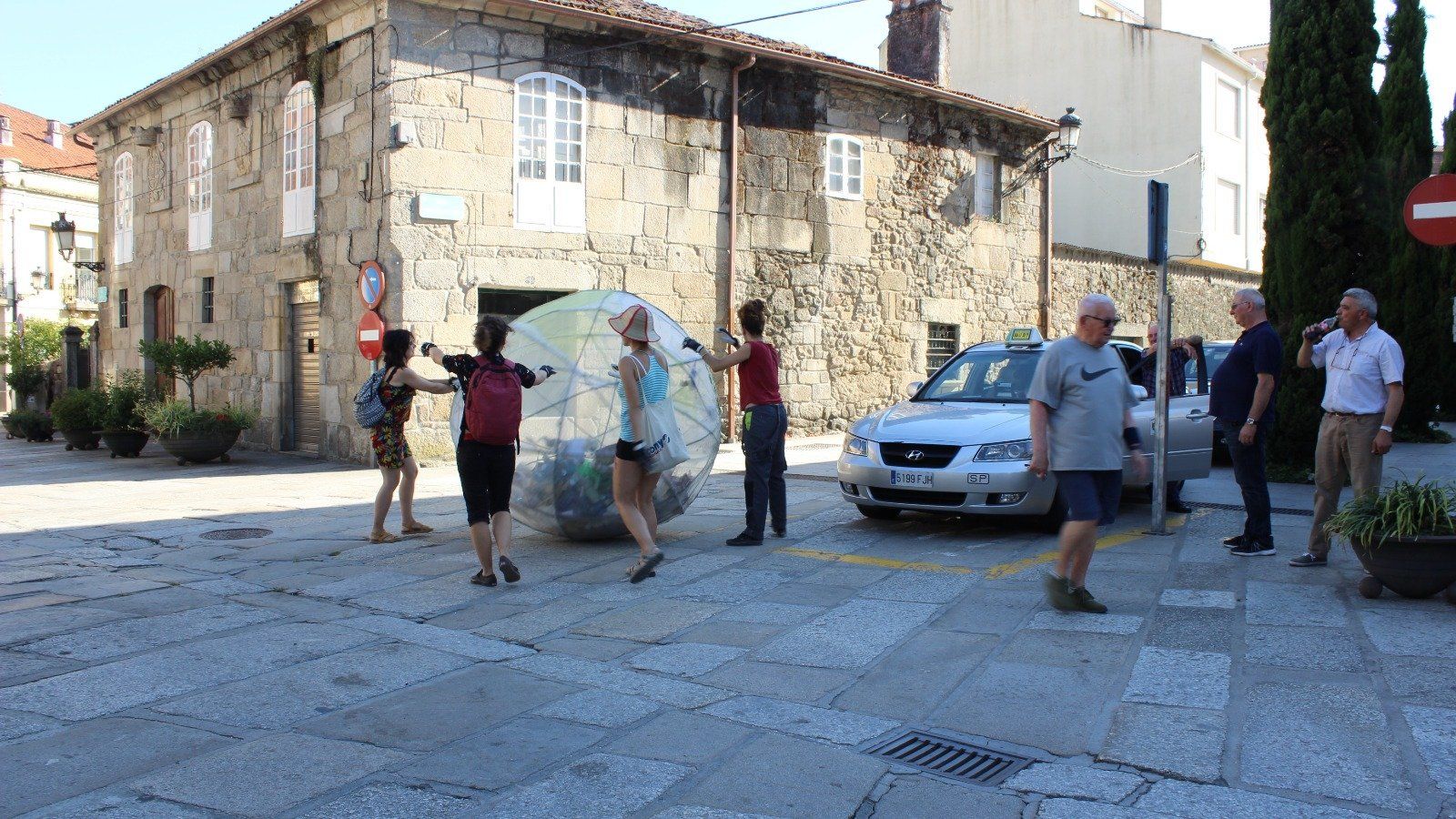 El proyecto consiste en la confección de una bola de tela de red de 2m de diámetro que será rellenada con basura recolectada por distintos puntos del pueblo de Caldas de Reis realizando recorridos por diversos barrios.