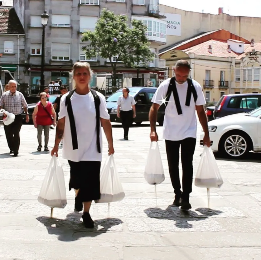 Una provocación, casi un acto de liberación que se exprime a través del texto escrito, como un megáfono mudo que incita a una confrontación sobre inquietudes y obsesiones de nuestros tiempos. Argumentos íntimos y complejos comprimidos en una única palabra, imprimida con letras enormes sobre grandes carteles que serán colocados directamente por mano de la artista en varios lugares del municipio, vivirán en el paisaje durante toda la manifestación. Una acción catártica, exorcizante, que se instala con prepotencia en el tejido del centro urbano de Caldas de Reis, invirtiendo la usual percepción visiva para dar voz a las más íntimas inquietudes.