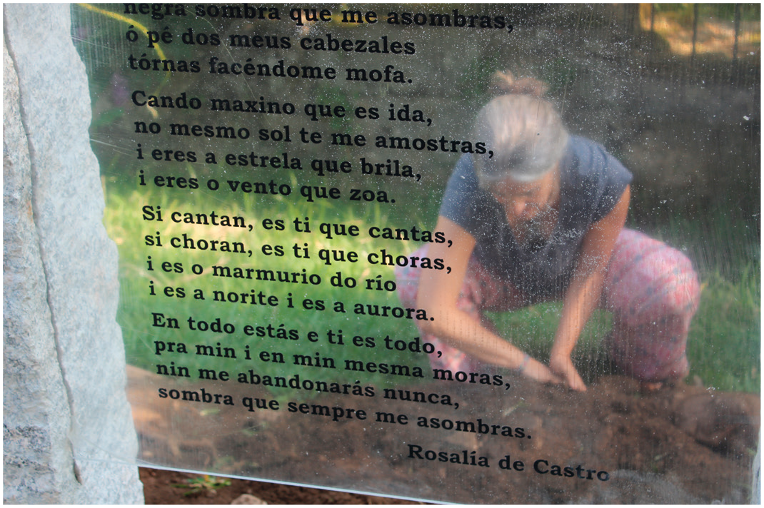 El proyecto es una llamada de atención al problema de los incendios forestales en Galicia. Se pretende encontrar un lugar propicio para la reflexión y la toma de conciencia de la situación, desde la que mostrar la destrucción del medio natural de Galicia y el dolor que arrastramos por su pérdida. Fomenta la participación de todos el que llega allí, provocando una relación causa/efecto, con observación simultánea de la imagen de un montículo quemado y semillas de roble recién germinado a los pies de la intervención, invitando a plantar, donde tu caminar y tu corazón la llevará.